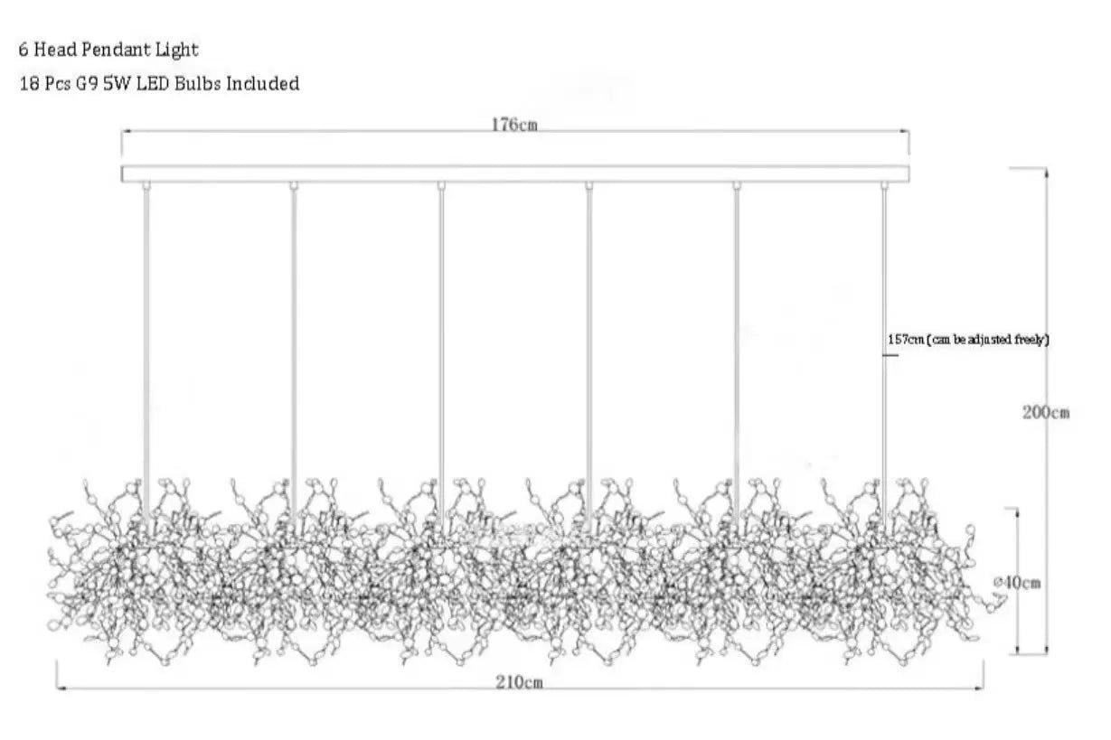 Designed to accommodate G9 light sources, the Aurora provides a brilliant and inviting glow, perfect for enhancing the ambiance of any room. Its versatile design makes it ideal for a range of settings, including living rooms, dining rooms, bedrooms, villas, and lobbies. Elevate your interior with the Aurora chandelier and experience the perfect blend of luxury and functionality.