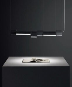 Post-modern LED chandelier. Dark minimalistic design that will put class to most rooms, whether it’s an office, dining or living room, or why