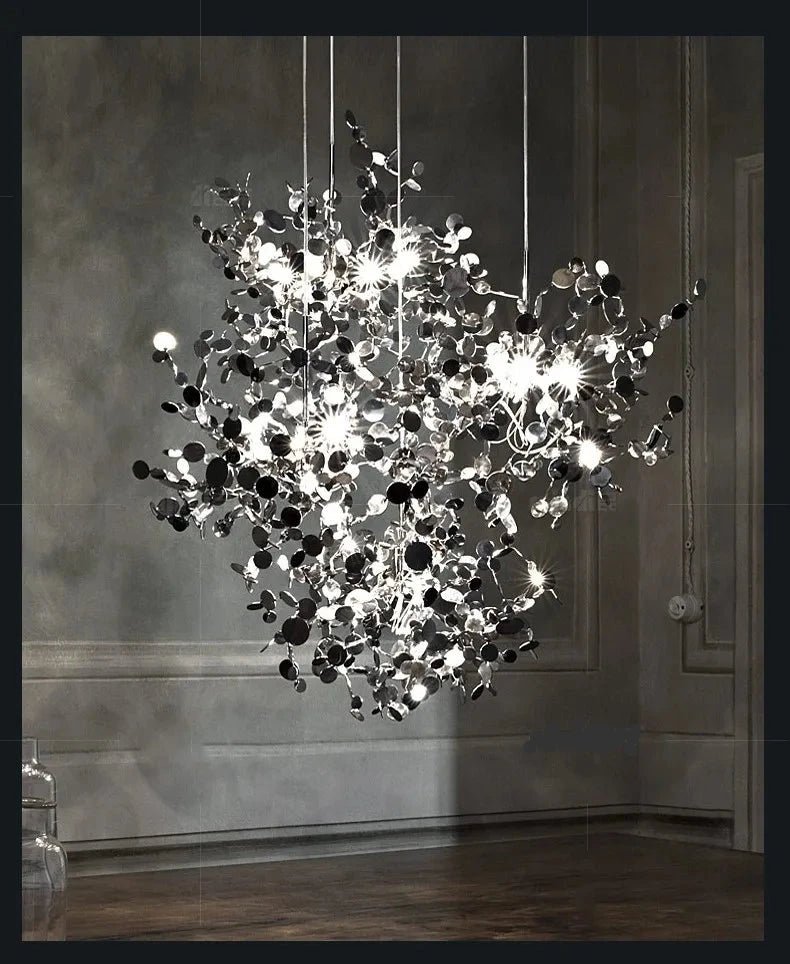 Introducing the Aurora chandelier. Crafted from high-quality stainless steel, the Aurora combines durability with timeless style. Available in two stunning lamp body finishes—Golden and Chrome—this chandelier effortlessly complements various decor themes.