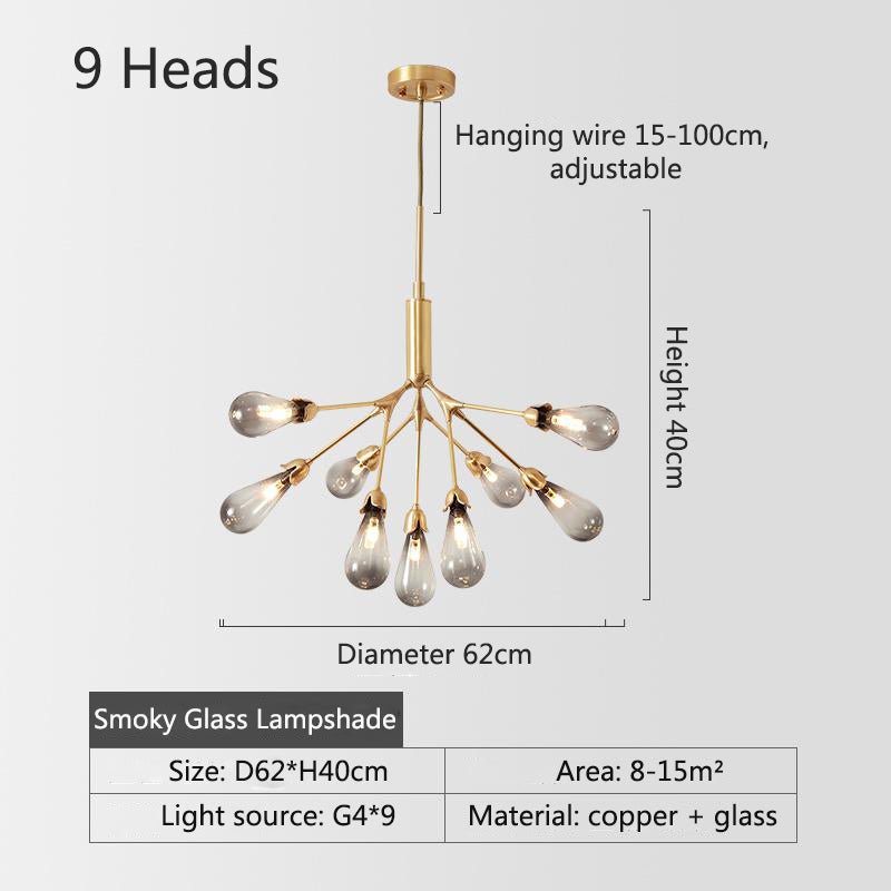 Nordic copper chandelier. Modern home decor lighting for bedrooms, dining rooms, hallways , etc. This stunning chandelier comes in 4 sizes with