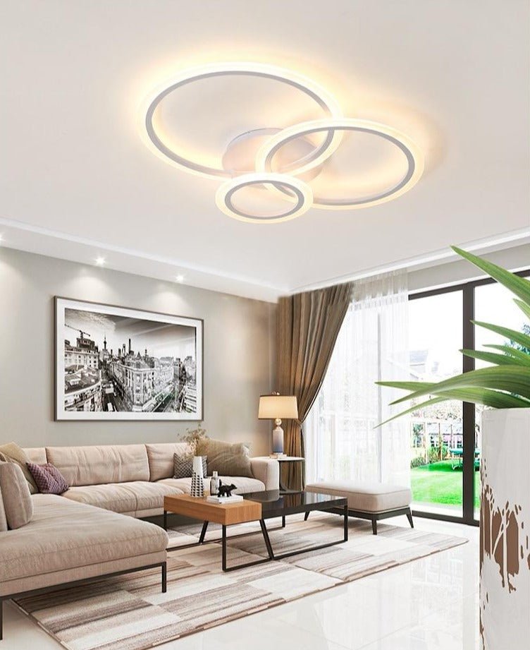 Modern simple white LED ceiling light. This lighting suits most rooms and creates a harmonic atmosphere wherever put. Can also be used as wall decoration.