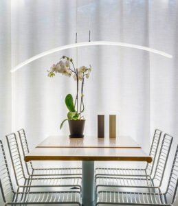 Modern long hanging dining room LED Chandelier ala Nordic style. Will also make a good fit for office areas, restaurants