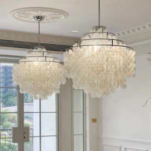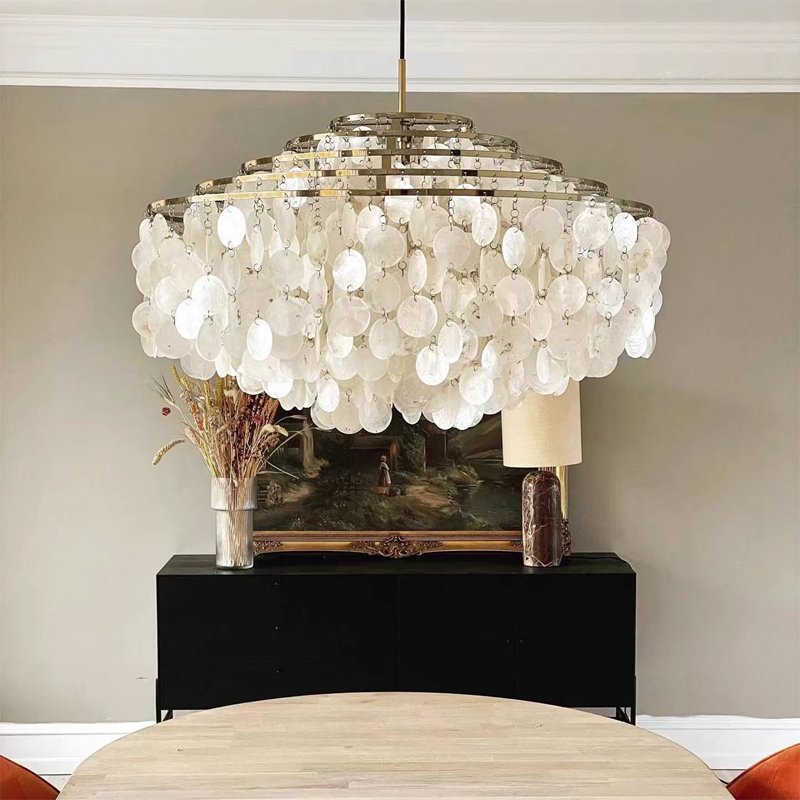 Enhance your home’s ambiance with this full shell LED chandelier, featuring stylish seashells by the seaside. Ideal modern lighting for living room, dining rooms, nightclubs, bar.