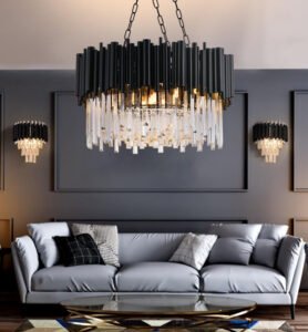 Post-modern LED chandelier. Dark minimalistic design that will put class to most rooms, whether it’s an office, dining or living room, or why